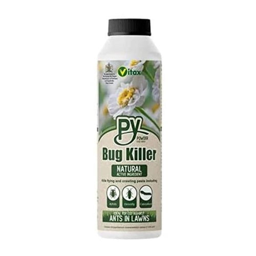 Vitax Py Powder 175g is a natural, pyrethrum-based insecticide designed to effectively control pests in gardens and homes. This ready-to-use powder targets a wide range of insects, including greenfly, ants, flea beetles, and caterpillars. Safe for use on edible crops and ornamentals, it offers a fast, non-toxic solution for pest problems.