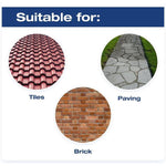 Effective on a wide variety of surfaces: patios, roofs, fences, driveways, decking, natural stone, artificial grass, bricks, headstones, paintwork, glass houses, solar panels, tarmac, and more.