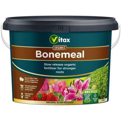 These nutrients are released slowly and steadily, making Vitax bonemeal an ideal fertiliser for bulbs and herbaceous plants, shrubs, roses, fruit trees and strawberries. It can be applied prior to sowing or planting and can be used throughout the season as a top dressing for roses and fruit trees.  Sterilised bonemeal is a tried and trusted organic fertiliser that provides both phosphate and nitrogen, The two nutrients essential for healthy plant growth.