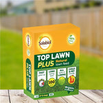 - Lawn fertilizer: Top Lawn Plus is a 100% naturally effective lawn fertiliser designed to promote a lush green and dense lawn throughout the season.