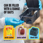 - Easy to use with various bait types (wax blocks, grain, pasta)