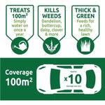 • Rapid results: Once applied, Green Up Feed and Weed swiftly take action, killing off weeds and stimulating grass growth to cover any bare areas left by the eradicated weeds.