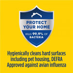 Help protect pets with regular cleansing of animal housing to hygienically clean and neutralise odours. Also suitable for kennels, hutches, coops, pigeons’ lofts and stables